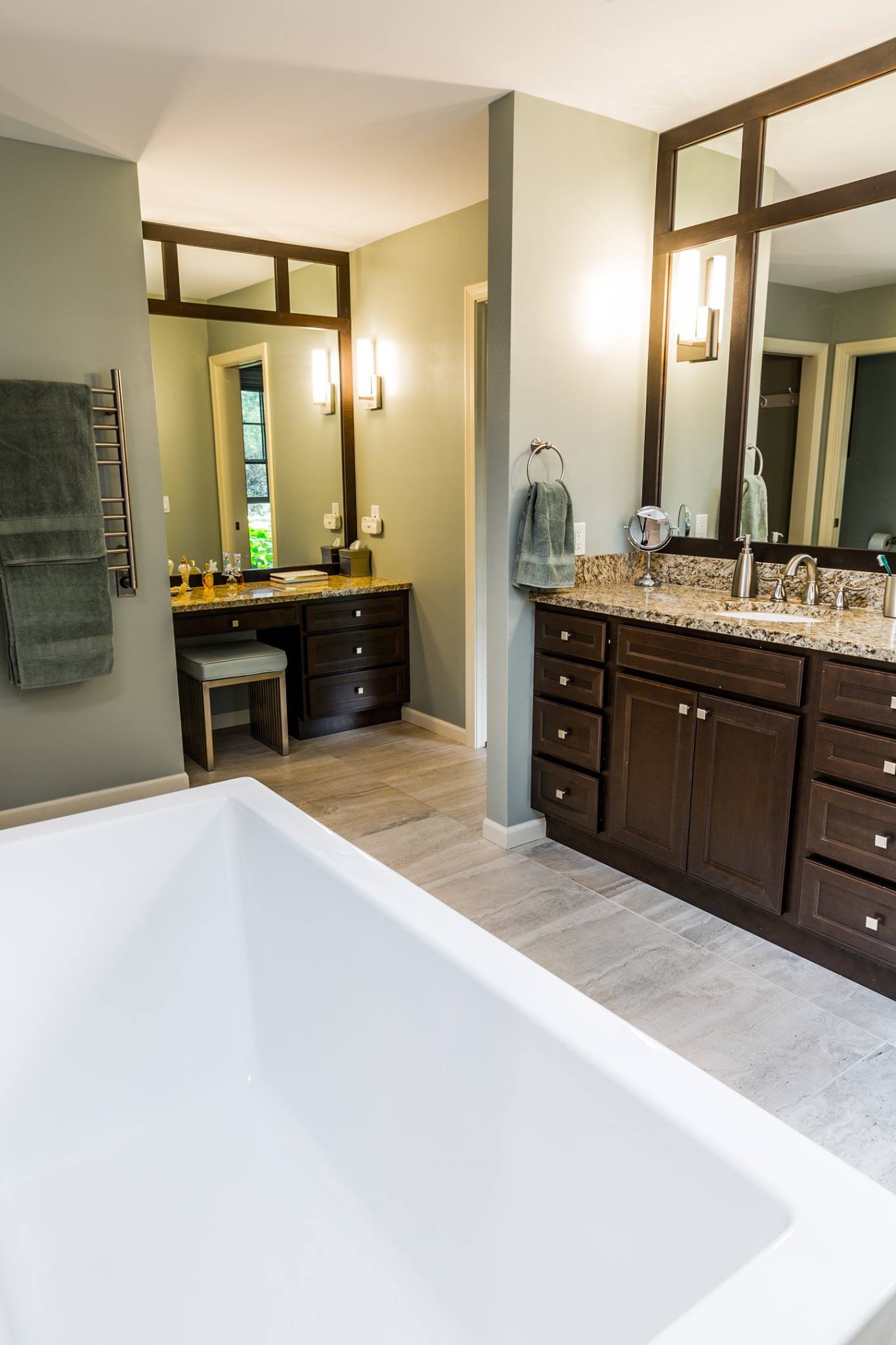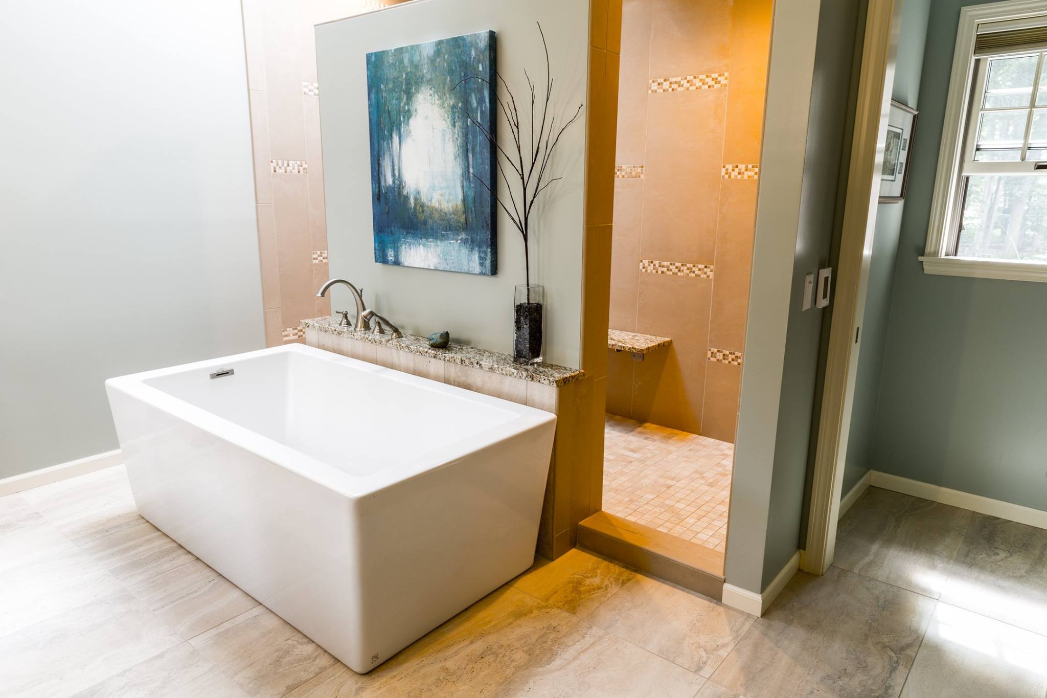 Higher end finishes and details really make this bathroom stand out. It all started with replacing a large corner garden tub!